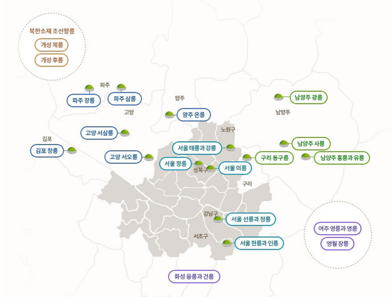 🔹서오릉: 5기의 왕릉이 있으며, 아름다운 숲길로도 유명합니다. 특히 인조의 장릉과 숙종의 명릉이 대표적입니다.