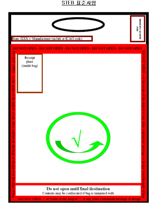 - STEB(Security Tamper Evident Bag, 항공보안 전용 봉투)에 즉시 밀봉