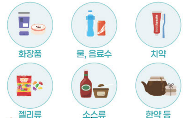 - 화장품: 로션, 스킨, 선크림, 파운데이션, 마스카라, 립글로스, 젤 형태 등