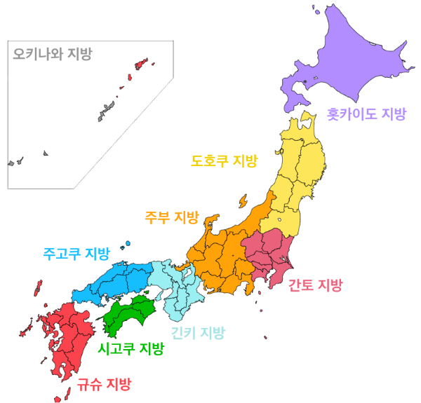일본 행정구역 도도부현과 시정촌, 8개 지방 한눈에 정리