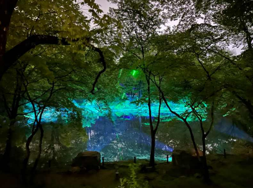 - 세월을 담은 빛의 연출로, 거대한 나무와 조명이 어우러져 자연과 빛의 조화를 느낄 수 있는 공간입니다.