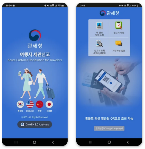 - 관세청 모바일 세관 신고 앱을 활용하면 입국장 대기 시간을 줄일 수 있습니다.