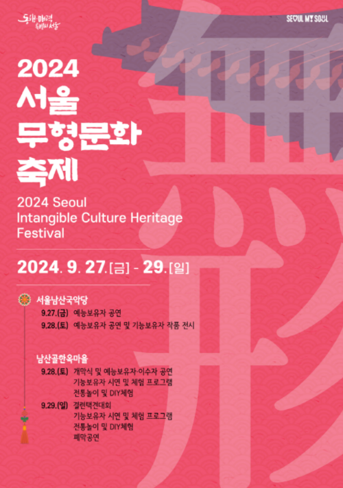 | 서울무형문화축제 | 9.27.(토)~9.28.(일) | 남산골한옥마을 | |