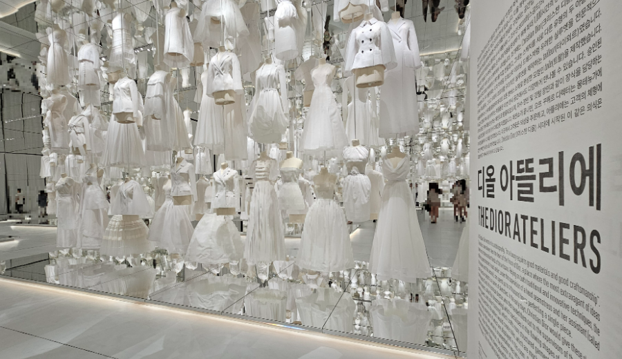 ‘크리스챤 디올: 디자이너 오브 드림스’는 디올 브랜드의 세계에 몰입할 수 있도록 설계된 공간 연출과 스토리텔링이 돋보이는 전시입니다.